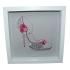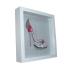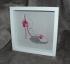 Cuvettes, perles, coton à dentelle dégradé, fleurs en papier, fil de soie, tissu lin, cadre vitrine en bois.